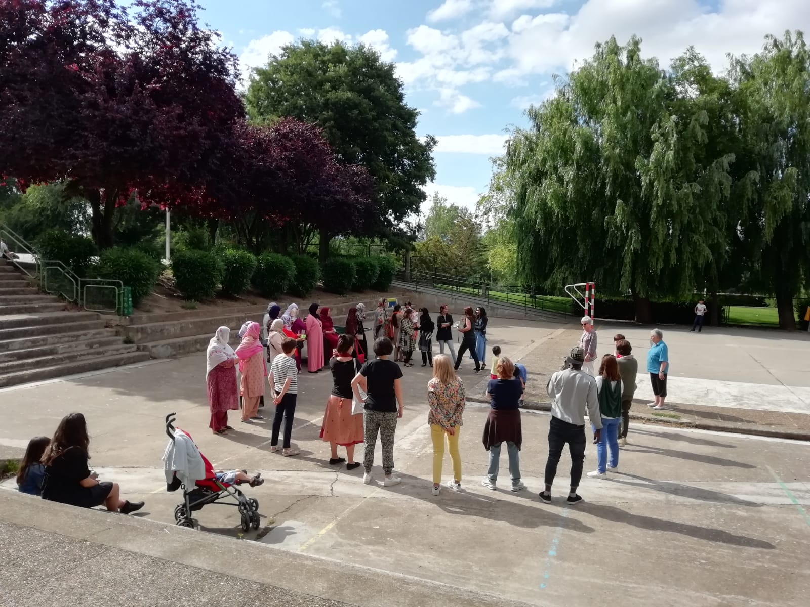 Esta tarde tuvimos los cuatro grupos participantes de las clases de español celebramos la fiesta final de curso en el Colegio Público San Francisco que, una vez más, generosamente nos acoge y pone a nuestra disposición todo lo que necesitamos, tanto espacios, como mobiliario principalmente.