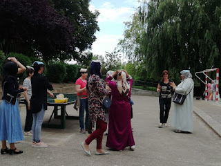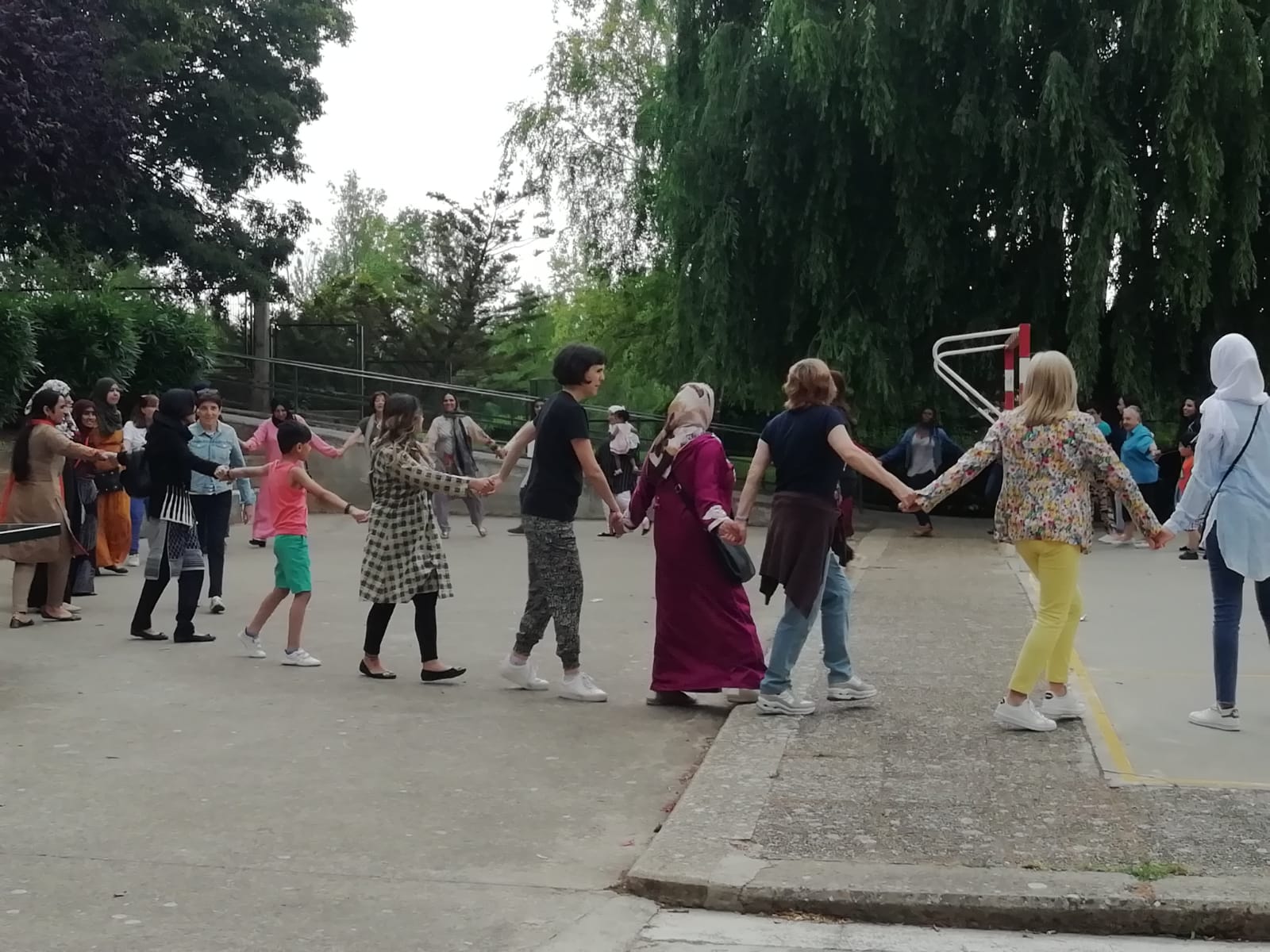 Después compartimos una gran variedad de alimentos propios de cada país y terminamos con bailes marroquíes. Es de admirar el ritmo con el que se mueven nuestras alumnas y el grito-canto que lanzan con todas sus fuerzas.
